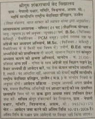 | स्वामी वेदान्ती वेद विद्यापीठ, वाराणसी (उ.प्र) | Modern Teacher Advertisement Date of Upload :29/11/2021 |